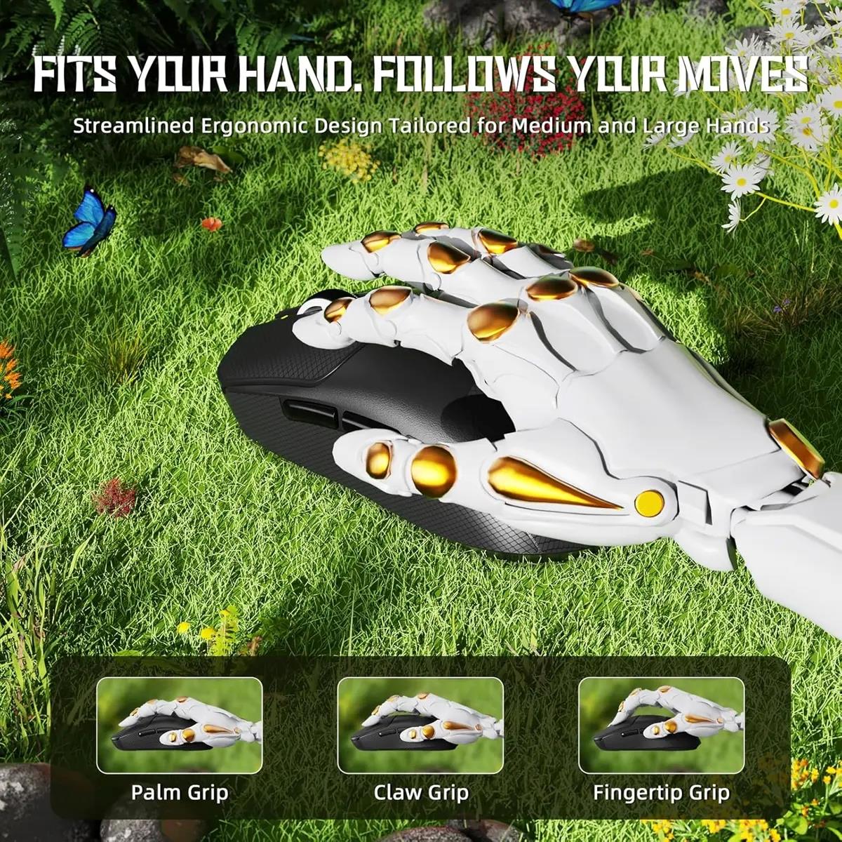 Stay Connected, Stay Unbeatable - The X8 SE ergonomic mouse seamlessly switch between Bluetooth, 2.4GHz wireless, and wired USB connections. This computer mouse delivers incredible responsiveness and reliability with a super-fast 0.3993ms actuation with no debounce delay, enjoy reliability and speed that outshines others.