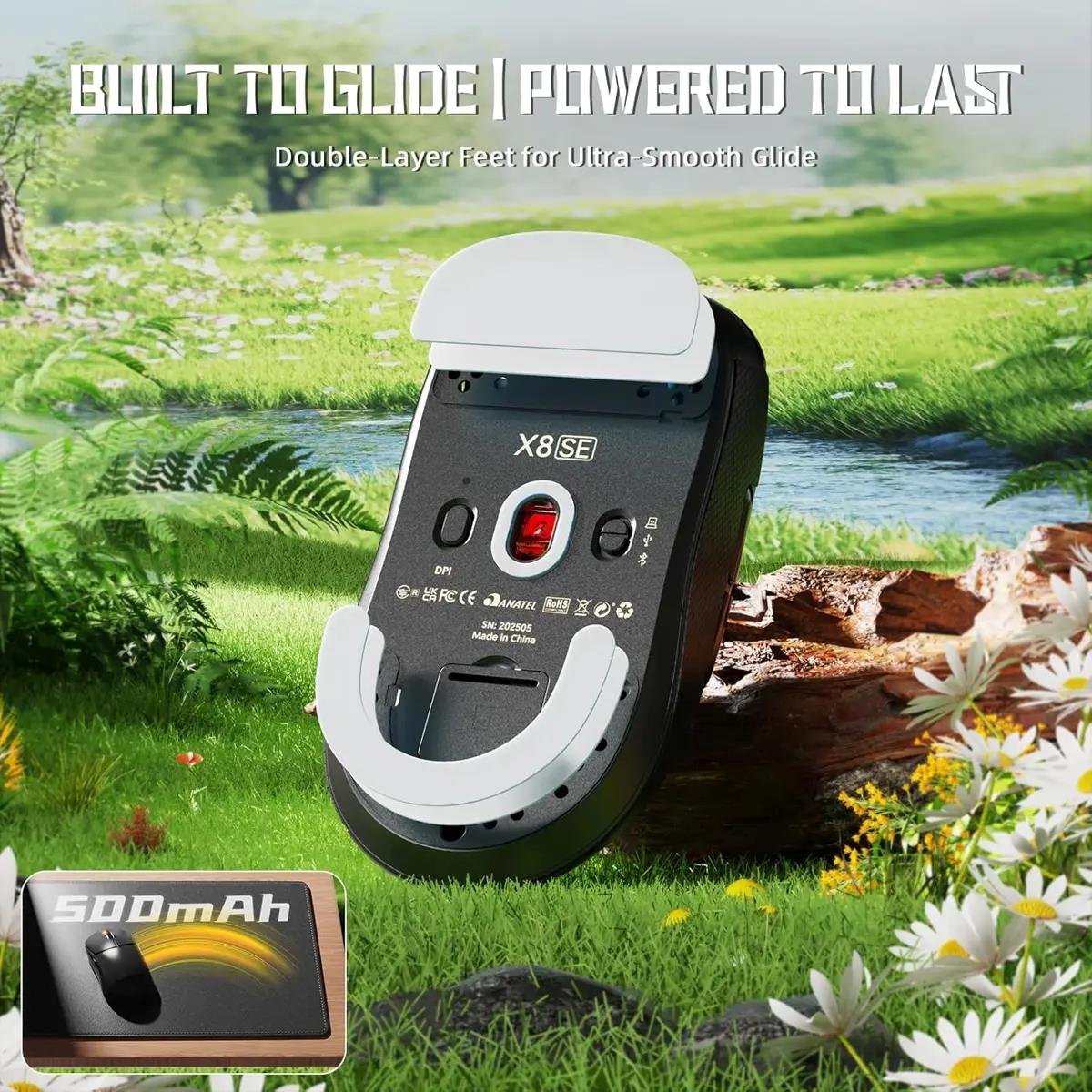 The X8 SE bluetooth mouse is your canvas for customization. Equipped with innovative and intelligent cloud-driven webpage, bid farewell to traditional driver software, no need to download and install. The open-source driver automatically identifies your computer system, and allows for DPI adjustment, rate of return, competitive mode, customized buttons, macro recording, personalized key mapping and other advanced functions.